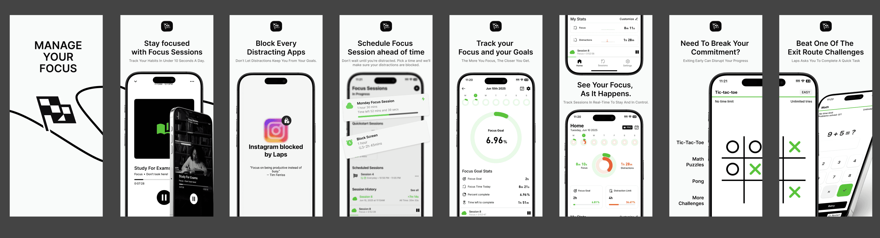 Laps is a mobile productivity app designed to help users regain control over their screen time through structured focus sessions. Unlike traditional focus or blocking apps, Laps centers its experience around intentional focus sessions that can be done solo or socially.